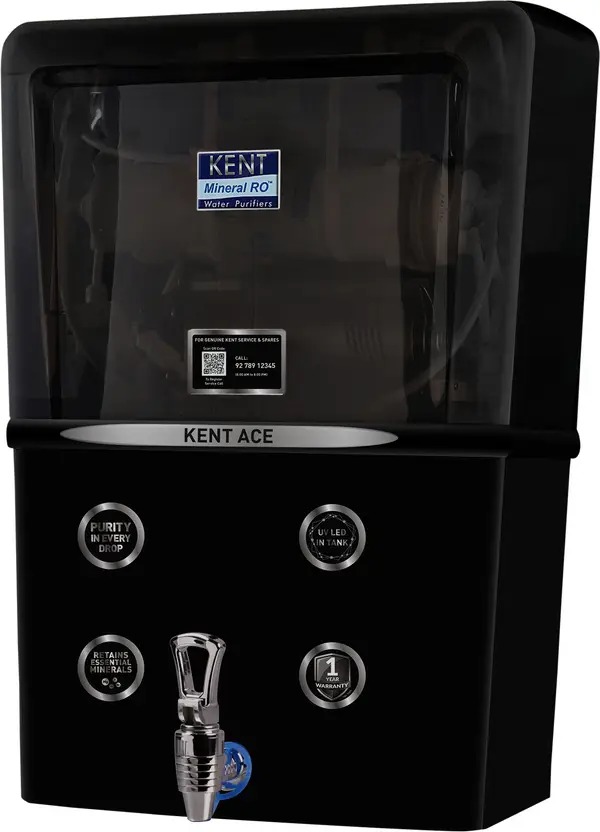 KENT ACE - B 8 L RO + UF + TDS Control + UV LED Water Purifier Suitable for all - Borewell, Tanker, Municipality Water (Black)