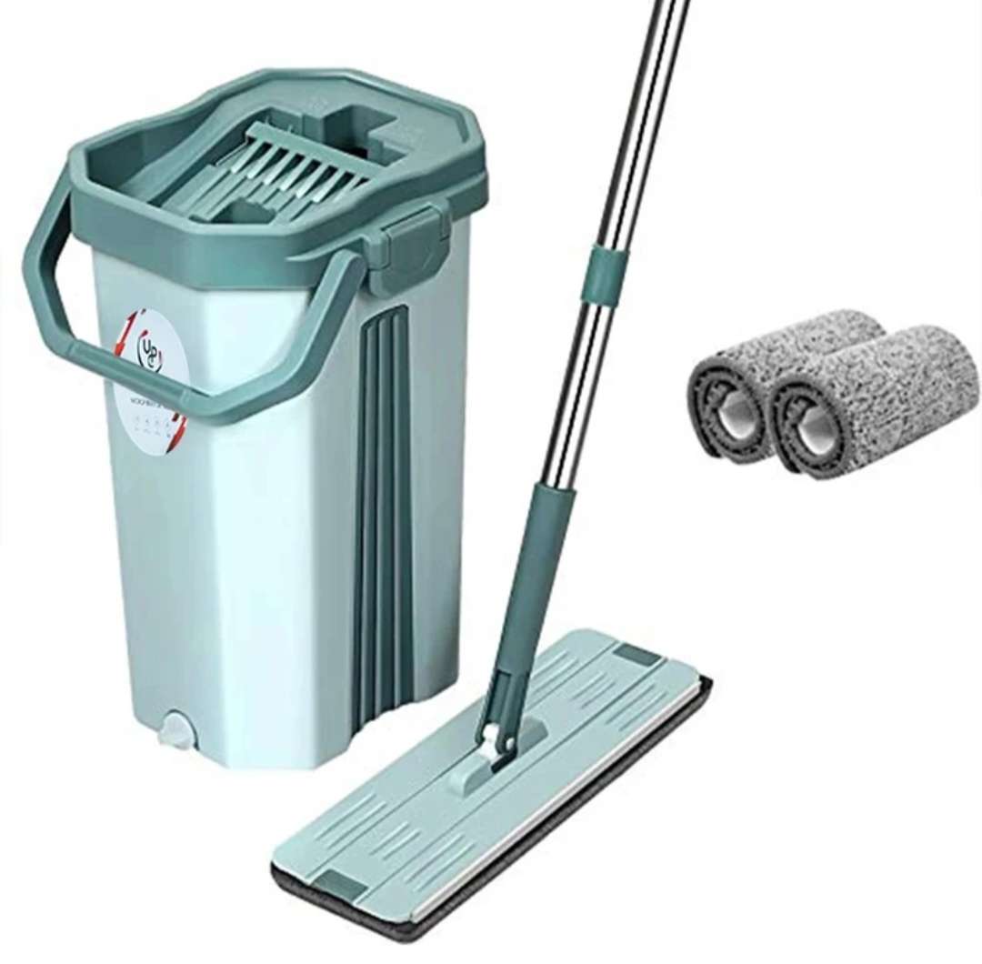 Microfiber Bucket 360? Flexible Head|Floor Cleaning Pocha Flat Mop Mop Set (Green)